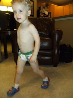 we were trying something new last night. roman is pretty good at removing all of his clothes by himself now, even his pullup. he did not, however, want to remove his socks last night and wanted to wear his crocs. i thought we could practice wearing big boy underwear since we are starting to think about potty training. combined, it's a lovely look. i think this will catch on nationwide!
